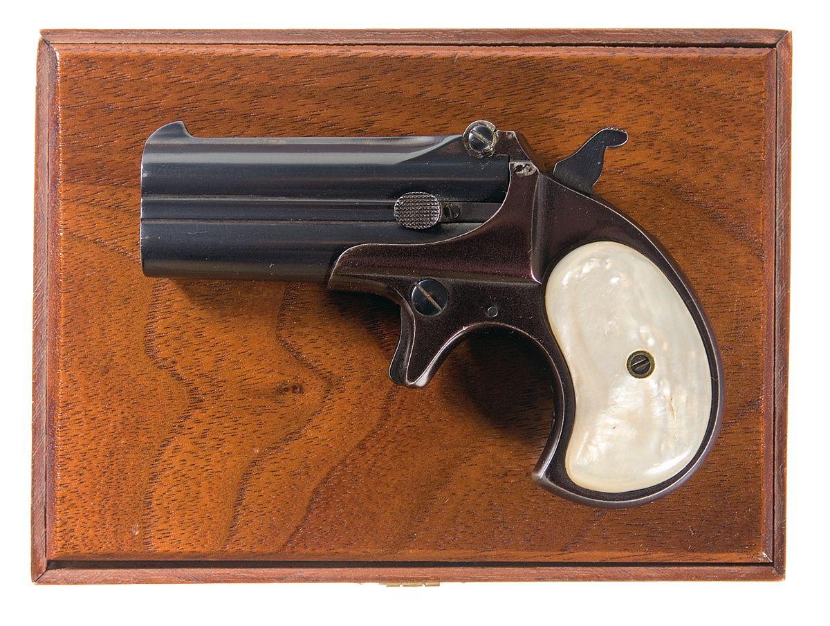 Manufactured between 1888 and 1911 with standard markings and pearl grips. Complete in wood case.