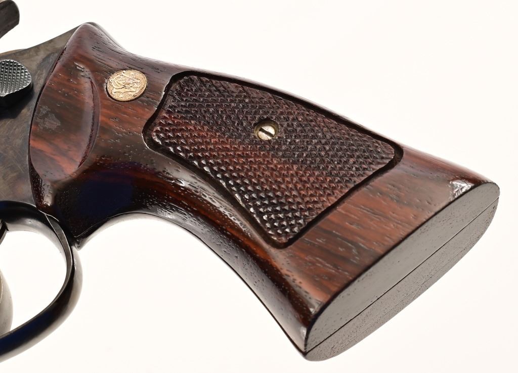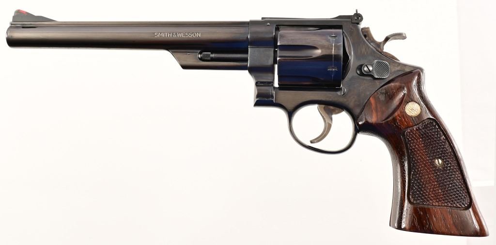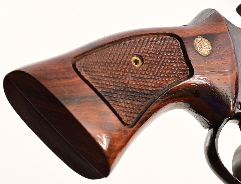 8.375" pinned Magnaport barrel, 3 screw frame, blue finish with checkered wood grips. Target hammer, trigger, and sights. Serial N415564, in excellent condition with wood presentation case(does need re-flocking)