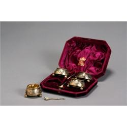 Cased Set of Four Victorian Silver-Gilt Master Salt Cellars with Spoons
