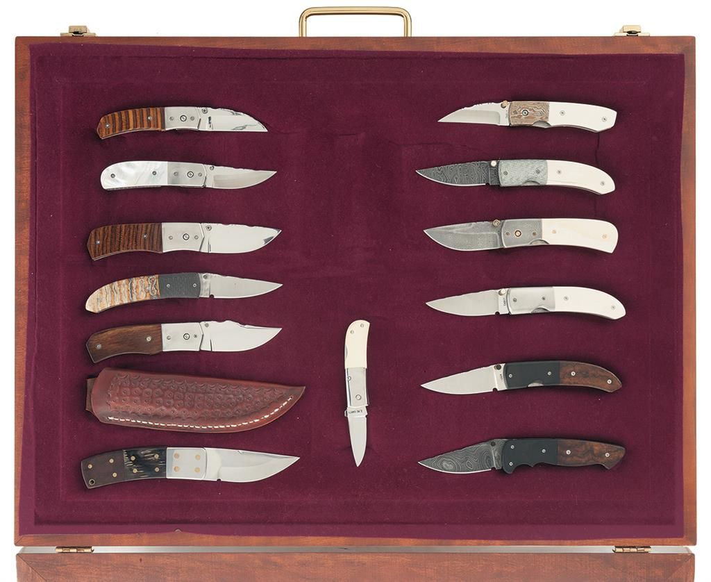 Cased Set of Thirteen Custom Knives, Chiefly Tabor Production