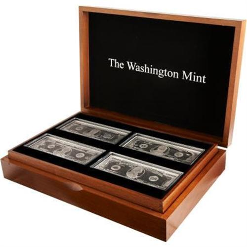 <B>2001 Cased $500, $1,000, $5,000, and $10,000 Silver Proof Set from The Washington Mint.</B></I> Each individually cased silver proof measures 6" x 2.5" itself and 6.25" x 2.75" in the case. Each luxurious proof in this set contains one-quarter pound of .999 pure silver bullion, is individually struck by The Washington Mint, and limited to 50,000. All four proofs are housed in a beautiful wooden storage box measuring 14.5" x 9.5" x 3", and this lot includes the original mailing box from The Washington Mint. Accompanied by four registered and numbered COAs from The Washington Mint.<I> Ex. Henry E. Luhrs Collection.</B></I> <BR><BR><b>Shipping:</b> Miscellaneous Collectibles, Larg (<a target="_blank" href="http://www.heritageauctions.com/common/shipping.php">view shipping information</a>)