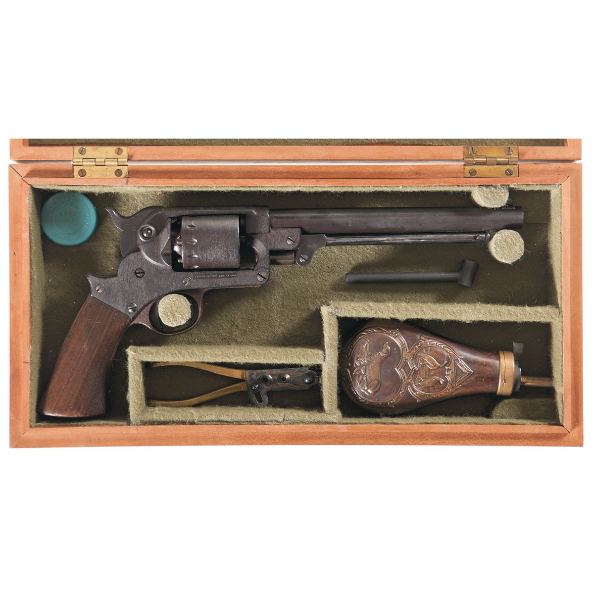 Manufactured 1863-1865. Initials marked on bottom of grips. With a hardwood display case and accessories.