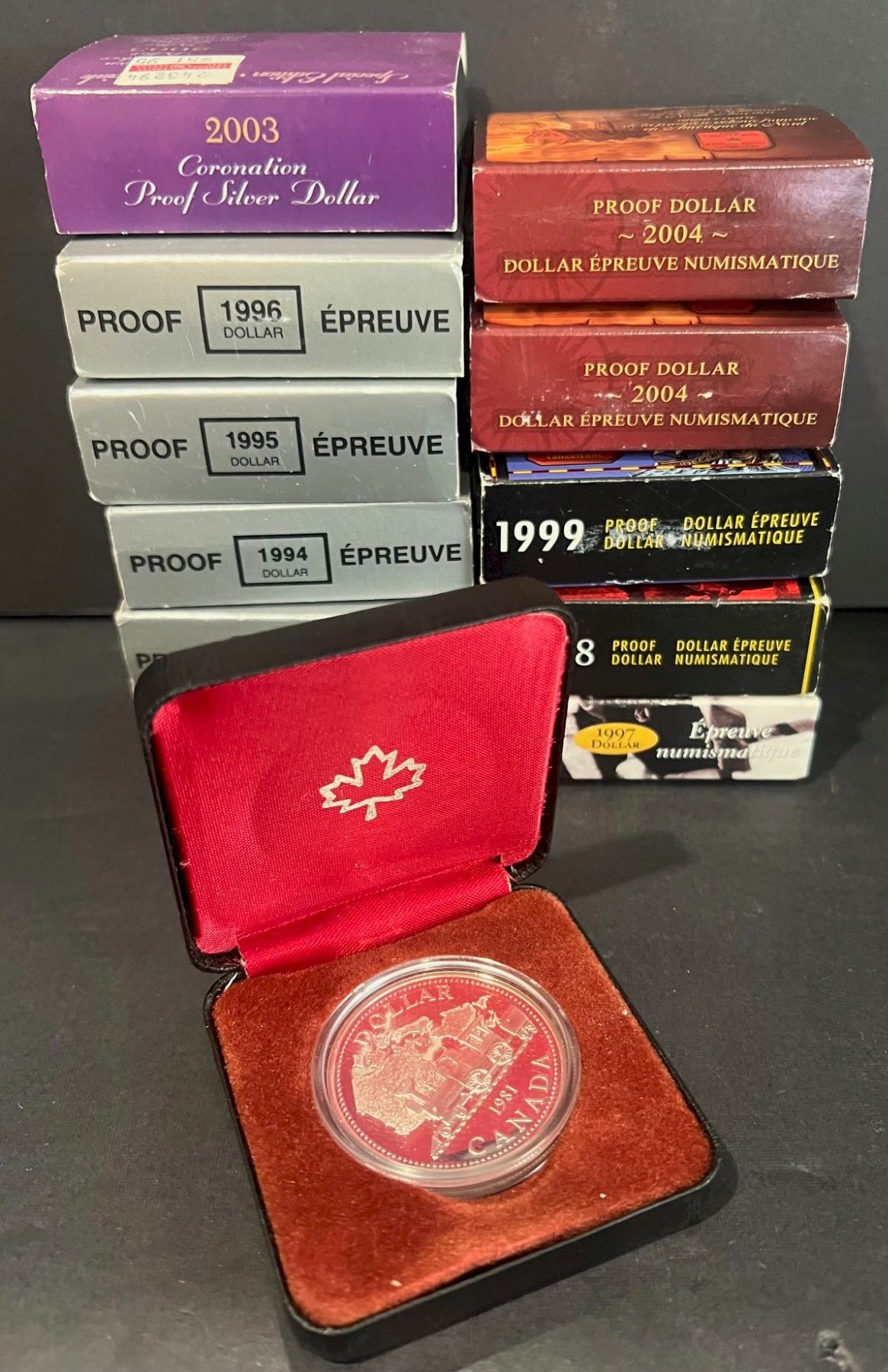 Cased UNC Silver Dollars 1981, 1992, 1993, 1994, 1995, 1996, 1997, 1998, 1999, 2003 & 2004(2). Lot