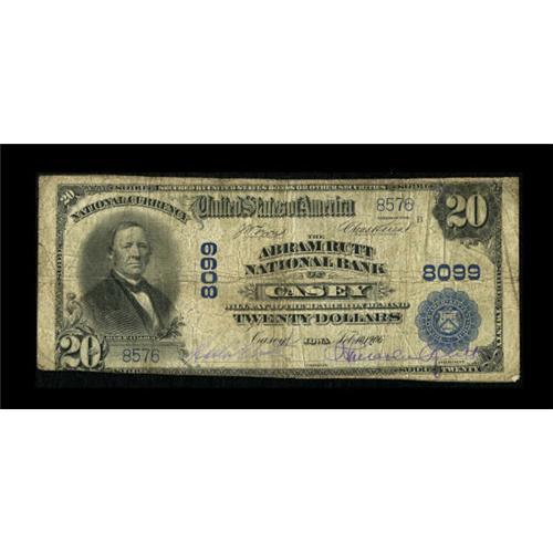 <B>Casey, IA</B></I> - $20 1902 Plain Back Fr. 651 <B>The Abram Rutt NB</B></I> Ch. # 8099<BR> A great private name bank with as good a private name title as could exist. <B>Very Good</B></I>, with the bottom margin trimmed quite a bit into the design at lower left.<BR><BR><b>Shipping:</b> Coins & Currency (<a target="_blank" href="http://www.heritageauctions.com/common/shipping.php">view shipping information</a>)