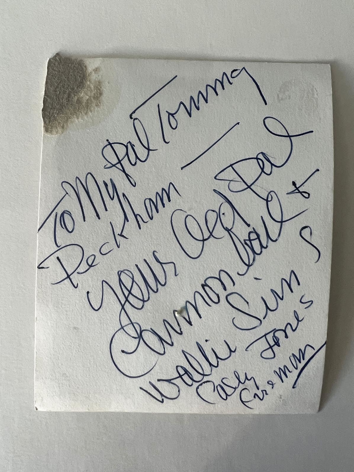 Casey Jones signed note