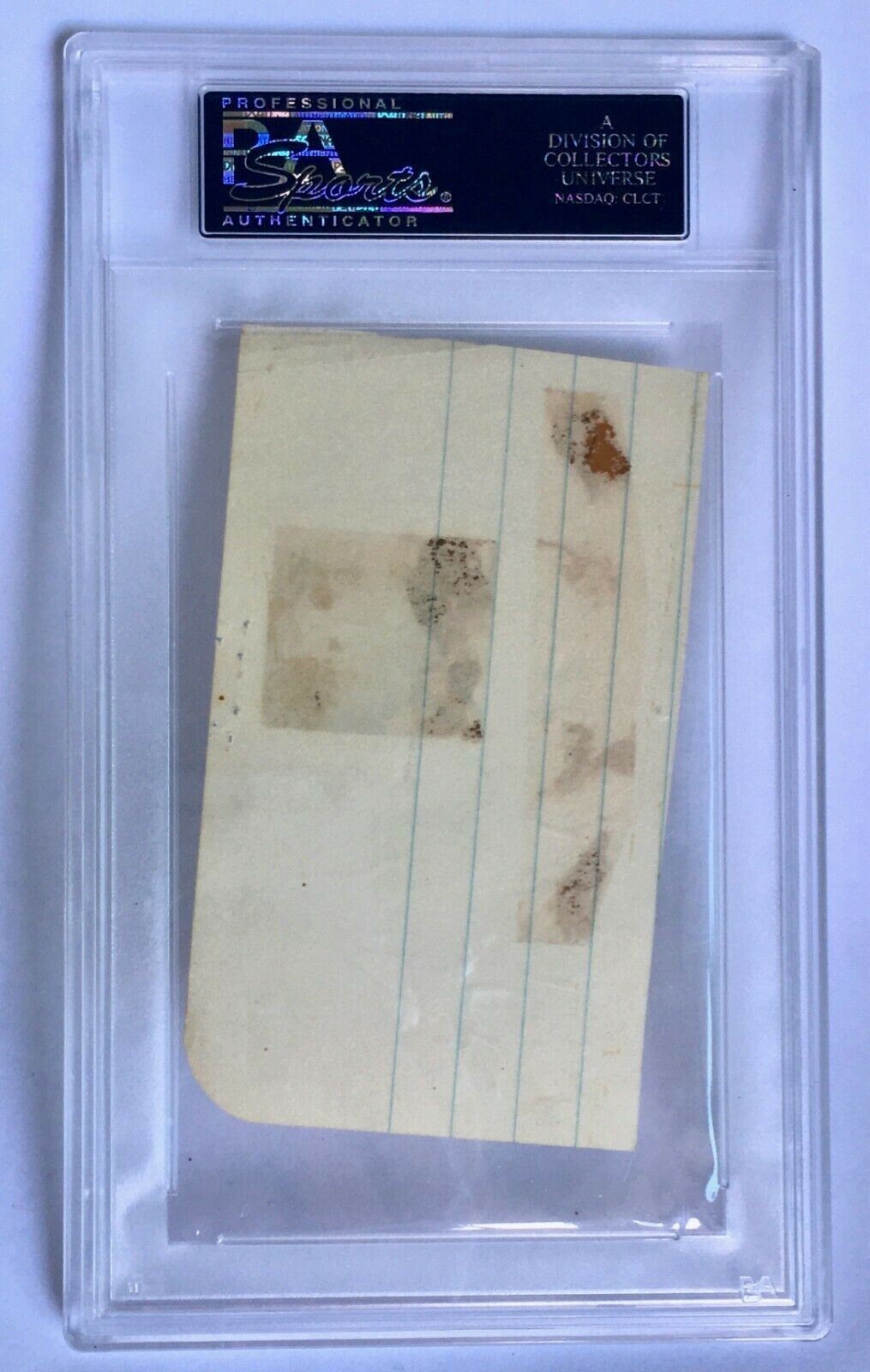 This Casey Stengel signature is unlike most which are encountered. This autograph (4.25x2.75") appears to have been signed before Stengel was an established Hall of Famer. Some staining visible on the dark blue signature. Auction LOA from SGC Authentic.