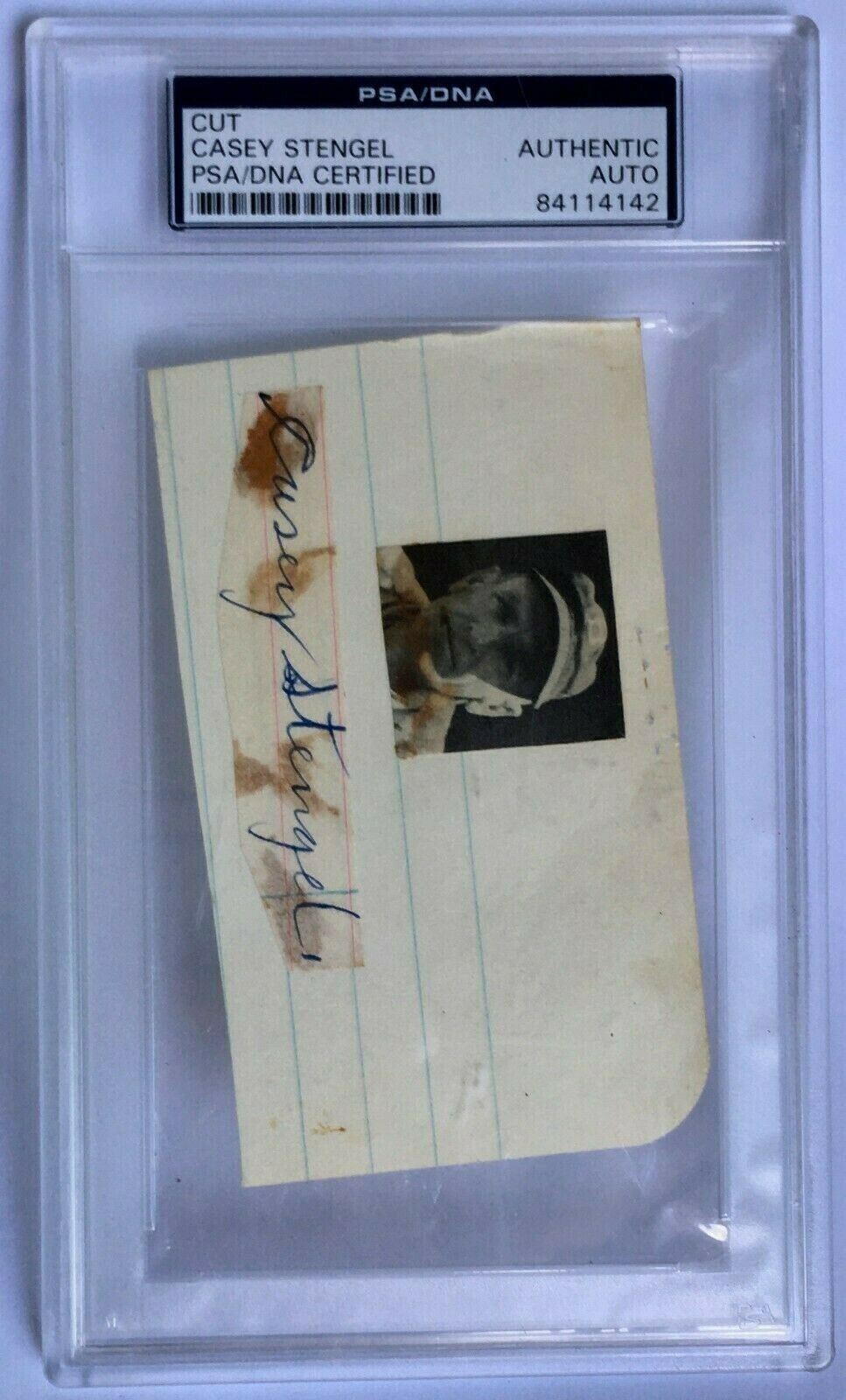 This Casey Stengel signature is unlike most which are encountered. This autograph (4.25x2.75") appears to have been signed before Stengel was an established Hall of Famer. Some staining visible on the dark blue signature. Auction LOA from SGC Authentic.