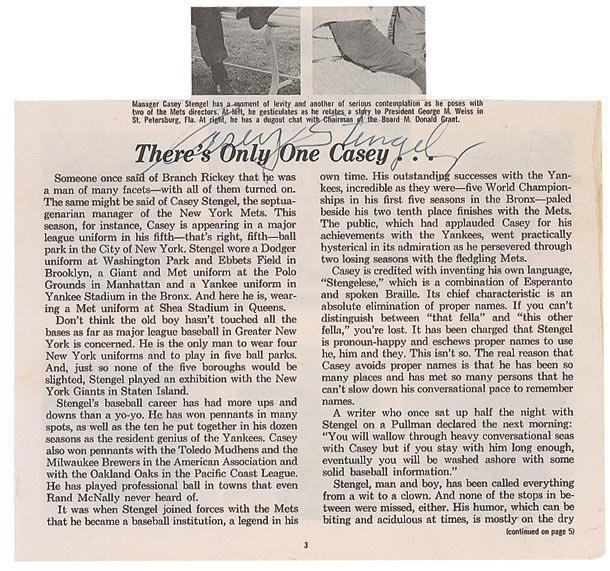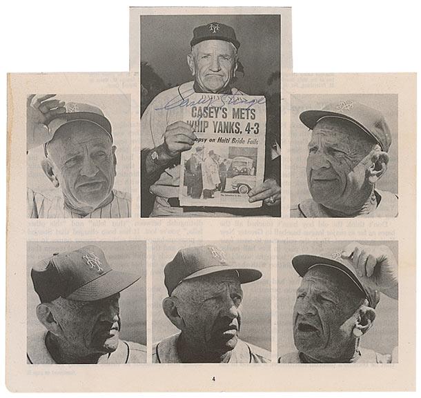Irregularly trimmed book page, 8.25 x 8, bearing a partial story on one side and several photos on the reverse, signed in blue ballpoint on both sides. In fine condition, with some scattered light toning and soiling.