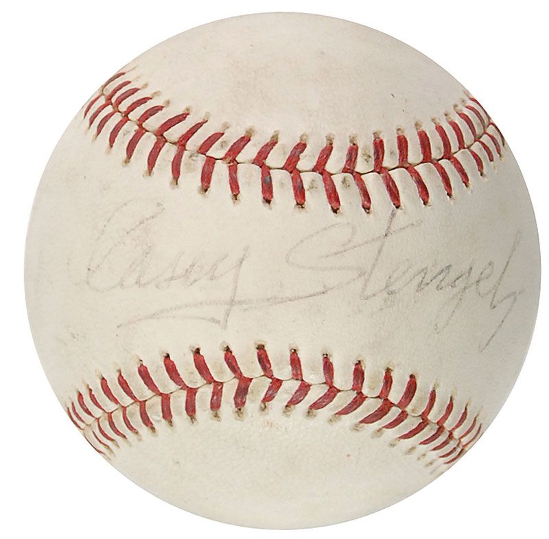 Official Spalding National League baseball signed in black ballpoint on the sweet spot. In very good condition, with signature uniformly light, but still completely legible, and scattered soiling. Accompanied by a letter of authenticity from James Spence.
