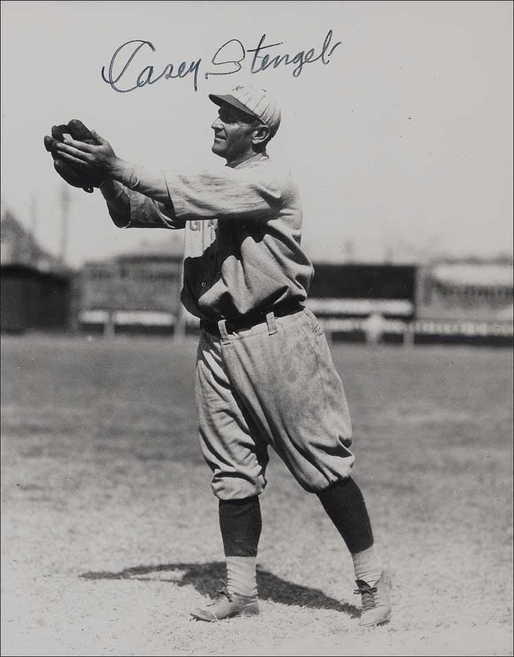 Glossy 8 x 10 photo of Stengel from his playing days, signed in black felt tip. Double matted and framed to an overall size of 12.5 x 15. In fine condition. Pre-certified Steve Grad/PSA/DNA and RRAuction COA.