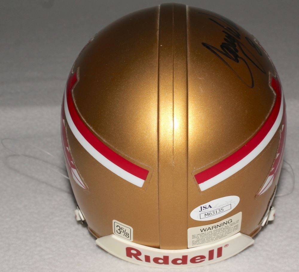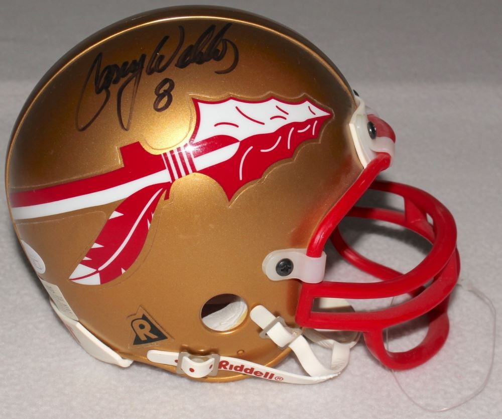 Riddell mini-helmet. Hand-signed in black felt-tip pen by Casey Weldon (Buccaneers). Please note, the small lining on the chin piece has detached. The autograph includes an official James Spence Authentication (JSA) hologram and matching COA for authenticity purposes.