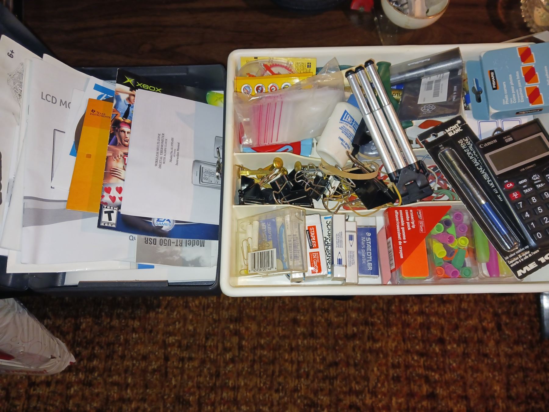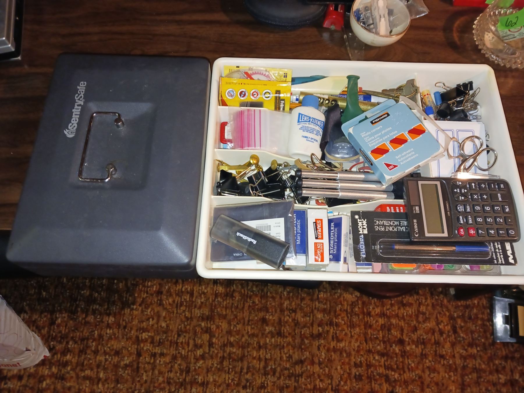 Cash Box + Tray of Office Stationary Items