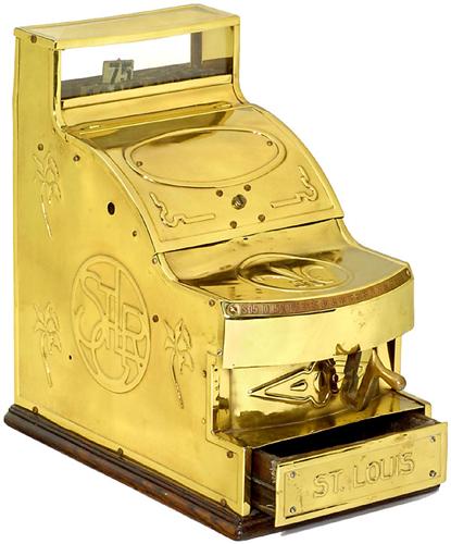 Cash Register St. Louis Mod. 49, c. 1915 American "Candy Store Size" cash register with fast index lever, in sheet and stamped brass. - From the "good old times" as applicable up to 95 cents only! - Nearly impossible to find in Europe!<Br>