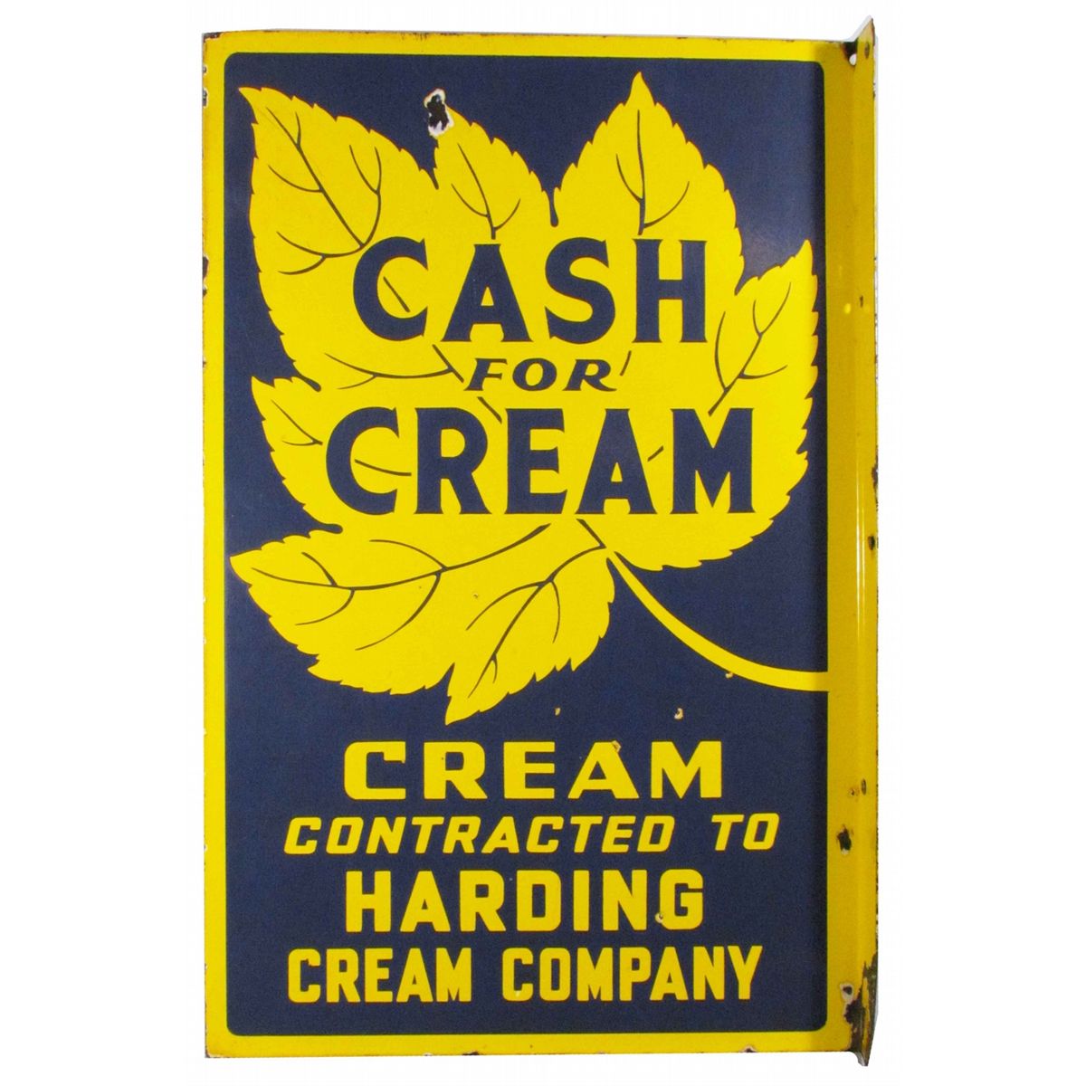Cash for Cream Heavy Porcelain Flange Sign. Harding Cream Company. A couple of minor chips otherwise very good condition. 18 X 28 inches.