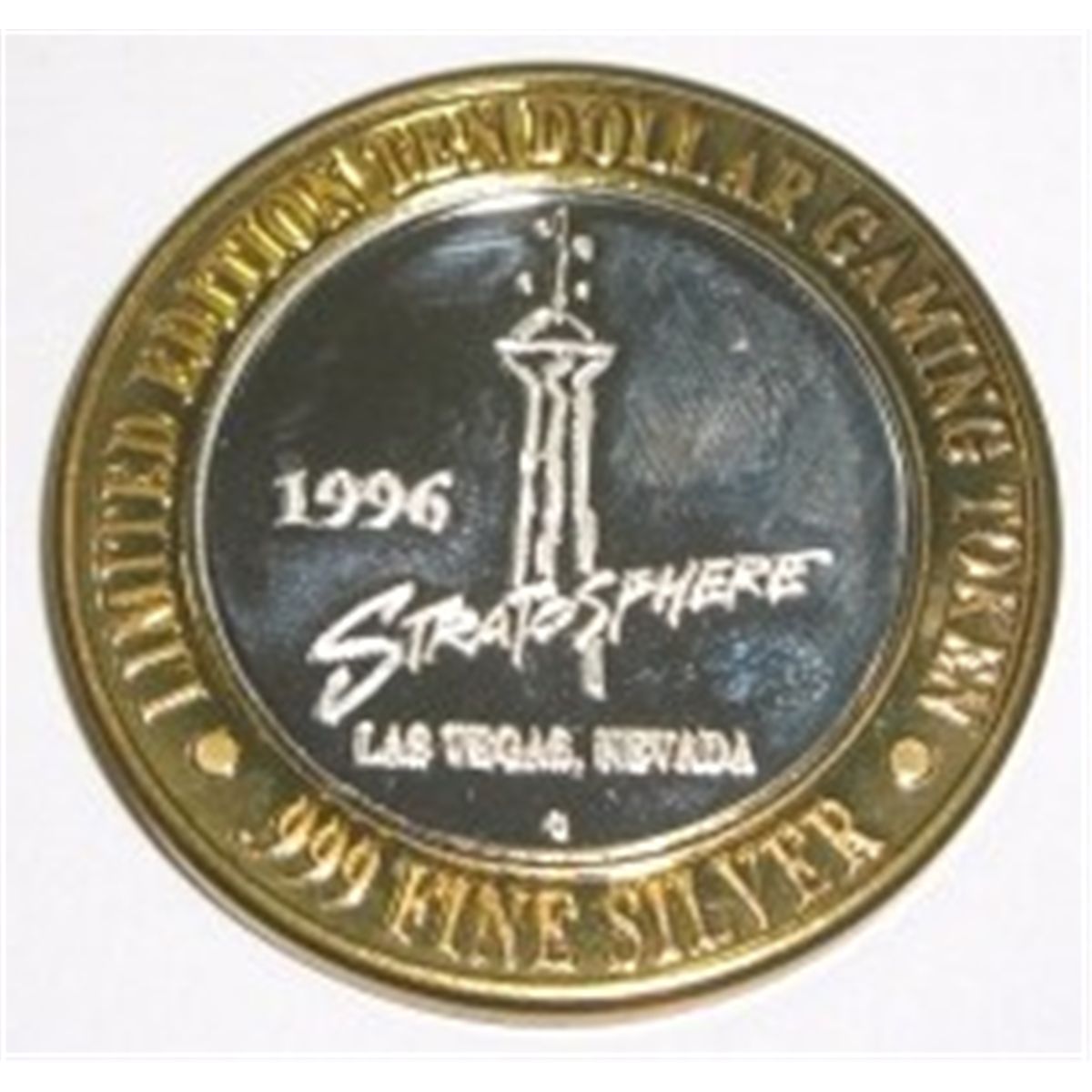 Casino ".999 SILVER STRIKE" $10 Coin *RARE TO FIND - 1996 STRATOSHERE*!! The Limited Edition $10 "SILVER STRIKE Casino Coins are .999 Pure Silver with a Heavy Gold Electroplated Outer Brass Ring!! ***Coin, Currency & All Items Listed in this auction - Grades, Conditions and Values are not Safe Deposit Coins LLC Responsibilty. Grades, Condition and Values are determined by Consigner(s) & Buyers ONLY***
