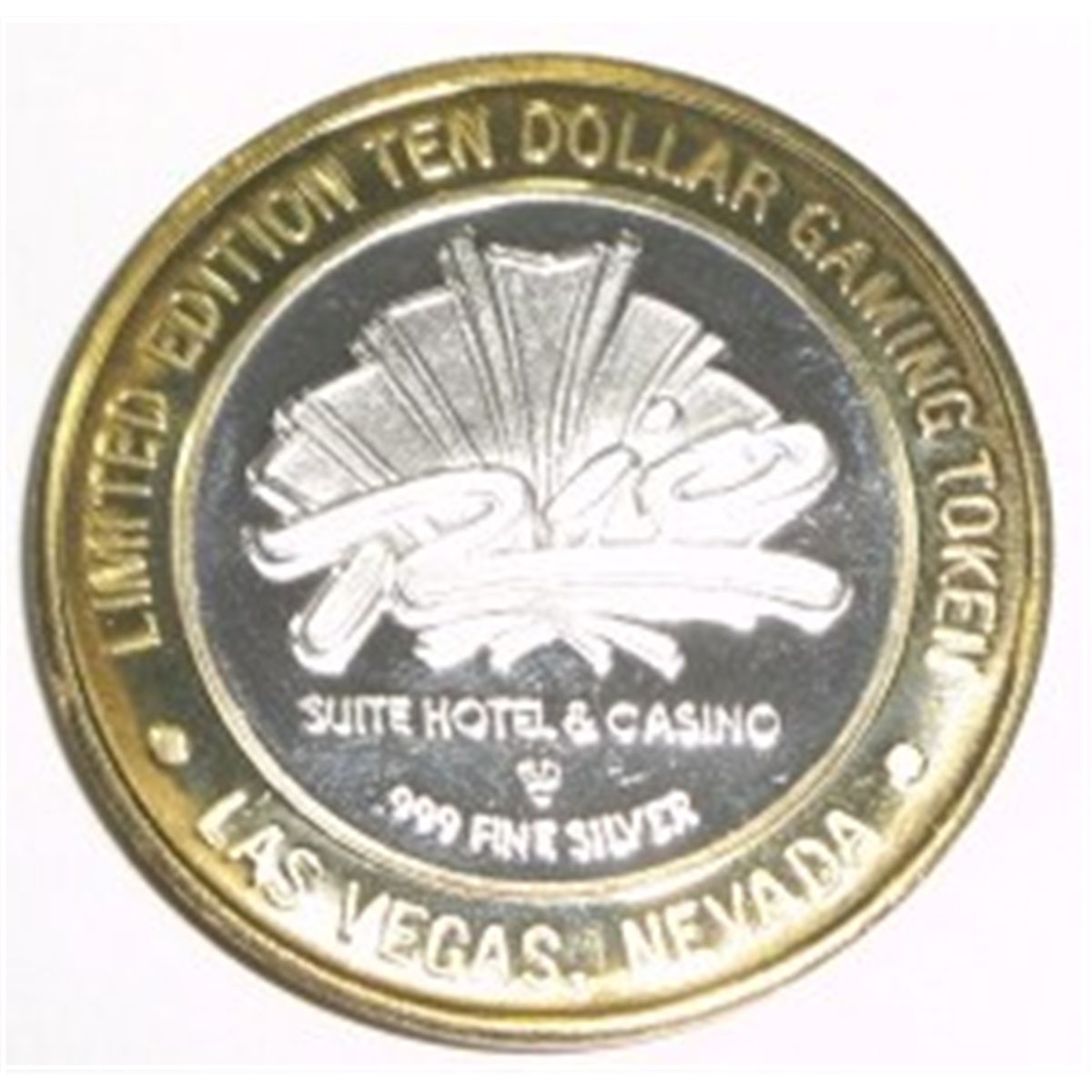 Casino ".999 SILVER STRIKE" $10 Coin *RARE TO FIND - RIO - MASQUERATLE VILLAGE*!! The Limited Edition $10 "SILVER STRIKE Casino Coins are .999 Pure Silver with a Heavy Gold Electroplated Outer Brass Ring!! ***Coin, Currency & All Items Listed in this auction - Grades, Conditions and Values are not Safe Deposit Coins LLC Responsibilty. Grades, Condition and Values are determined by Consigner(s) & Buyers ONLY***