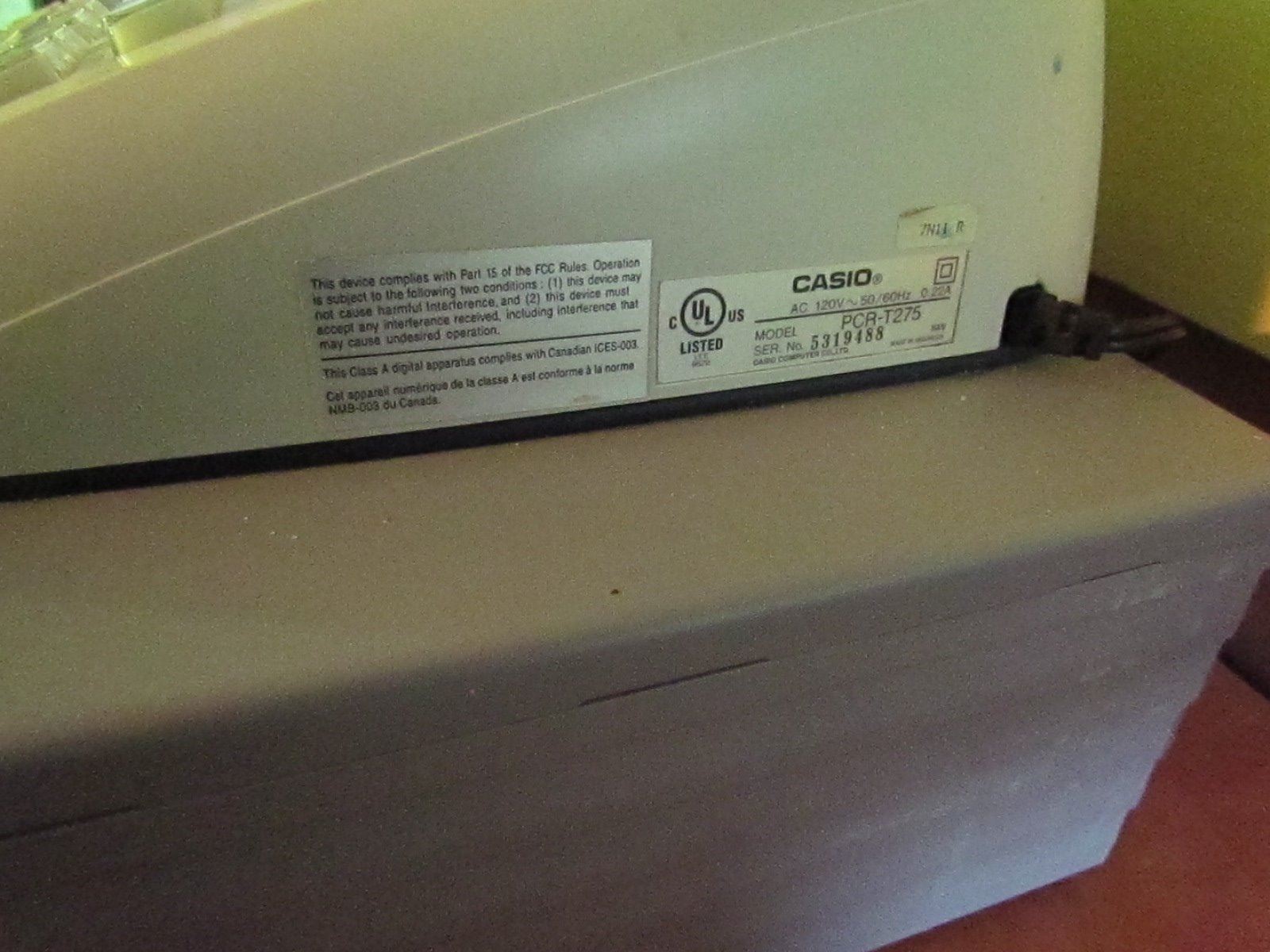 Casio electronic cash register, digital PCR-T275 with key