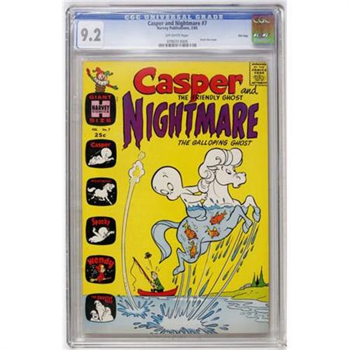 <B>Casper and Nightmare #7 File Copy (Harvey, 1965) CGC NM- 9.2 Off-white pages.</B></I> Giant-size issue. Overstreet 2007 NM- 9.2 value = $40. CGC census 9/07: 1 in 9.2, none higher.<BR><BR><b>Shipping:</b> Comics - Slabbed (certified) (<a target="_blank" href="http://www.heritageauctions.com/common/shipping.php">view shipping information</a>)