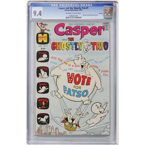 <B>Casper and the Ghostly Trio #1 File Copy (Harvey, 1972) CGC NM 9.4 Off-white to white pages.</B></I> Wendy and Spooky backup stories. Overstreet 2008 NM- 9.2 value = $32. CGC census 4/08: 1 in 9.4, 2 higher.<BR><BR><b>Shipping:</b> Comics - Slabbed (certified) (<a target="_blank" href="http://www.heritageauctions.com/common/shipping.php">view shipping information</a>)