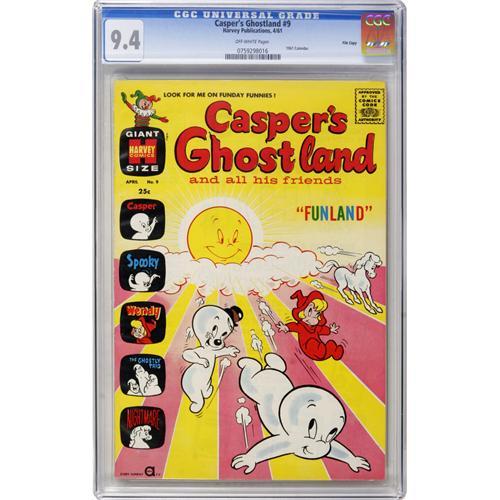 <B>Casper's Ghostland #9 File Copy (Harvey, 1961) CGC NM 9.4 Off-white pages.</B></I> Harvey included a 1961 calendar with this giant-sized issue, our copy of which is the finest known. Overstreet 2006 NM- 9.2 value = $105. CGC census 3/07: 1 in 9.4, none higher. <I> From the Cary and Cheryl Porter Collection.</B></I><BR><BR><b>Shipping:</b> Comics - Slabbed (certified) (<a target="_blank" href="http://www.heritageauctions.com/common/shipping.php">view shipping information</a>)