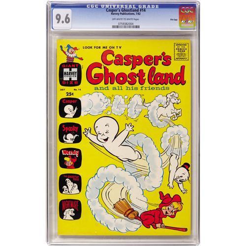 <B>Casper's Ghostland #14 File Copy (Harvey, 1962) CGC NM+ 9.6 Off-white to white pages.</B></I> Appearances by Spooky, Wendy, and Nightmare. Overstreet 2006 NM- 9.2 value = $80. CGC census 3/07: 1 in 9.6, none higher. <I> From the Cary and Cheryl Porter Collection.</B></I><BR><BR><b>Shipping:</b> Comics - Slabbed (certified) (<a target="_blank" href="http://www.heritageauctions.com/common/shipping.php">view shipping information</a>)