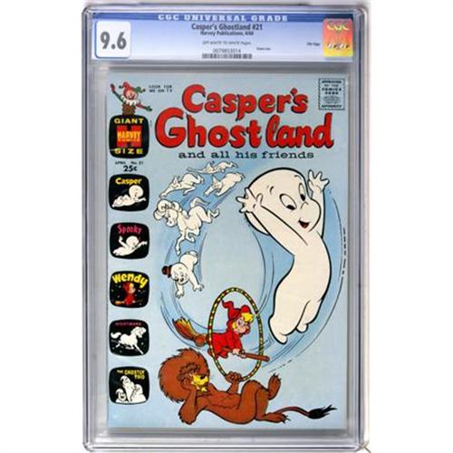<B>Casper's Ghostland #21 File Copy (Harvey, 1964) CGC NM+ 9.6 Off-white to white pages.</B></I> Giant size. Overstreet 2007 NM- 9.2 value = $55. CGC census 6/07: 1 in 9.6, none higher. <I>From the Cary and Cheryl Porter Collection.</B></I><BR><BR><b>Shipping:</b> Comics - Slabbed (certified) (<a target="_blank" href="http://www.heritageauctions.com/common/shipping.php">view shipping information</a>)
