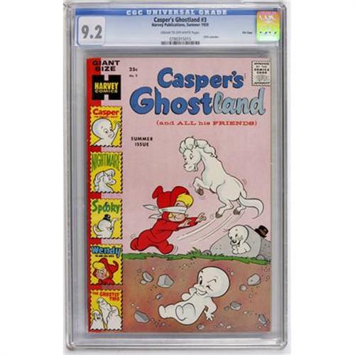 <B>Casper's Ghostland #3 File Copy (Harvey, 1959) CGC NM- 9.2 Cream to off-white pages.</B></I> Contains a 1959 calendar. Overstreet 2007 NM- 9.2 value = $105. CGC census 10/07: 1 in 9.2, 2 higher.<BR><BR><b>Shipping:</b> Comics - Slabbed (certified) (<a target="_blank" href="http://www.heritageauctions.com/common/shipping.php">view shipping information</a>)