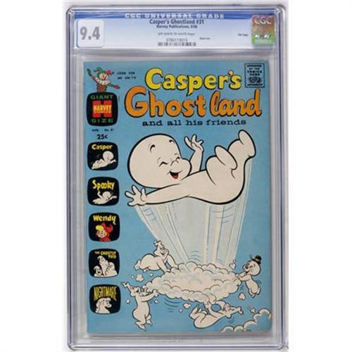 <B>Casper's Ghostland #31 File Copy (Harvey, 1966) CGC NM 9.4 Off-white to white pages.</B></I> Giant-size issue. Overstreet 2007 NM- 9.2 value = $55. CGC census 9/07: 1 in 9.4, 1 higher.<BR><BR><b>Shipping:</b> Comics - Slabbed (certified) (<a target="_blank" href="http://www.heritageauctions.com/common/shipping.php">view shipping information</a>)