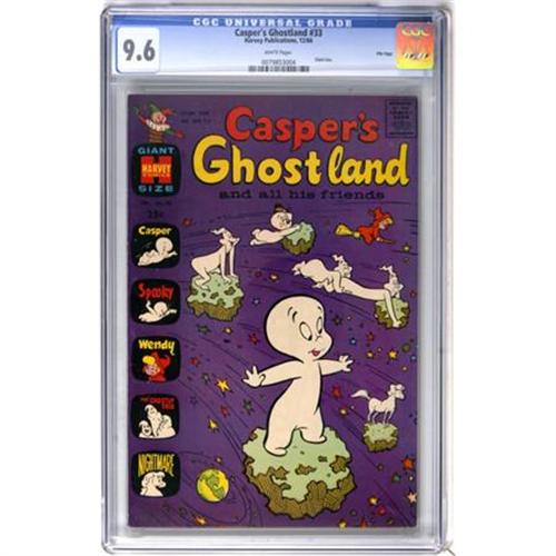 <B>Casper's Ghostland #33 File Copy (Harvey, 1966) CGC NM+ 9.6 White pages.</B></I> Giant-size issue. The only copy certified by CGC to date. Overstreet 2007 NM- 9.2 value = $55. CGC census 6/07: 1 in 9.6, none higher. <I>From the Cary and Cheryl Porter Collection.</B></I><BR><BR><b>Shipping:</b> Comics - Slabbed (certified) (<a target="_blank" href="http://www.heritageauctions.com/common/shipping.php">view shipping information</a>)