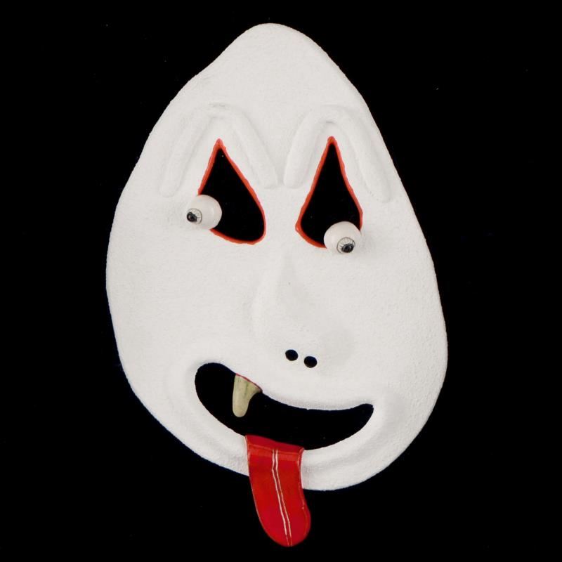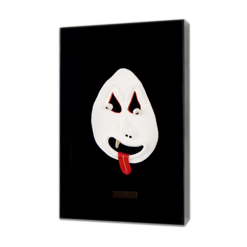 "Casper's Pal" is an original ceramic mask sculpture by George Marlowe. This piece comes suspended and encased in a custom-made Lucite display with signed metallic name plate. Includes Certificate of Authenticity. Measures approximately 23.5" x 15.5" x 4.