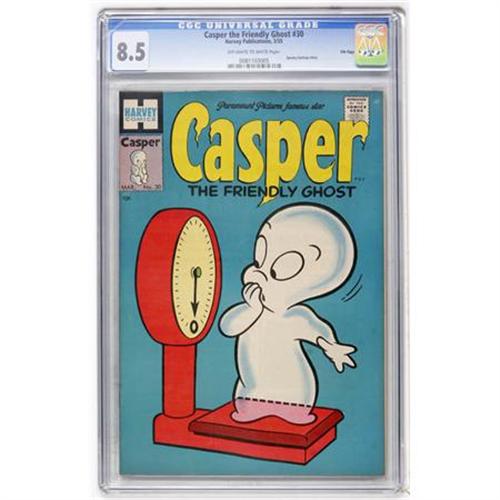<B>Casper the Friendly Ghost #30 File Copy (Harvey, 1955) CGC VF+ 8.5 Off-white to white pages.</B></I> Spooky backup story. Currently, the only copy on the CGC census. Overstreet 2007 VF 8.0 value = $69; VF/NM 9.0 value = $110. CGC census 1/08: 1 in 8.5, none higher.<BR><BR><b>Shipping:</b> Comics - Slabbed (certified) (<a target="_blank" href="http://www.heritageauctions.com/common/shipping.php">view shipping information</a>)