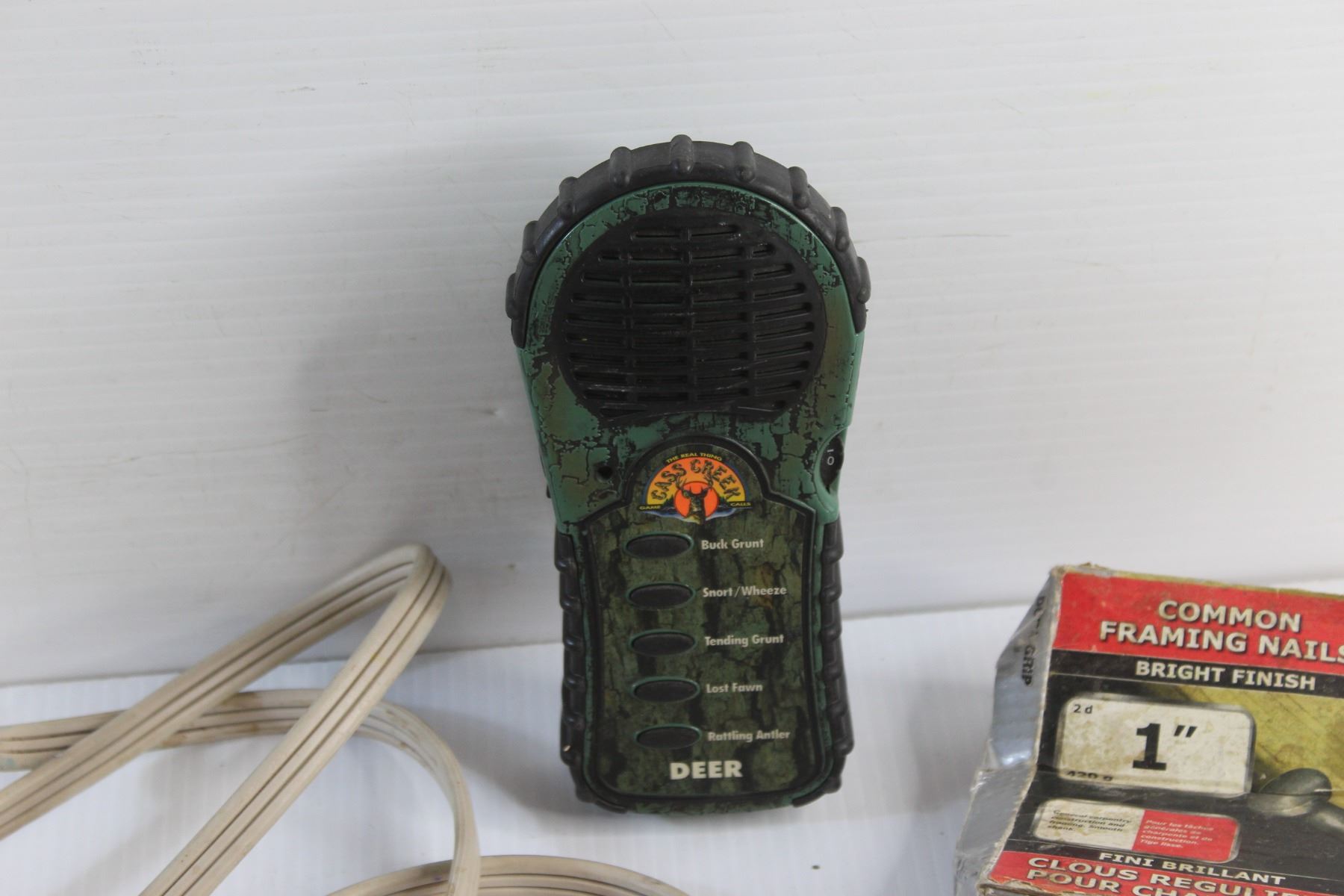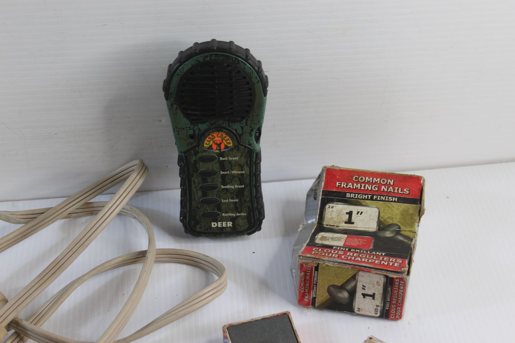 Cass Creek Electronic Deer Call - Tested, Power Bar, Cord Extension, Tool Organizer, Knife Sharpener, Safety Glasses and Misc