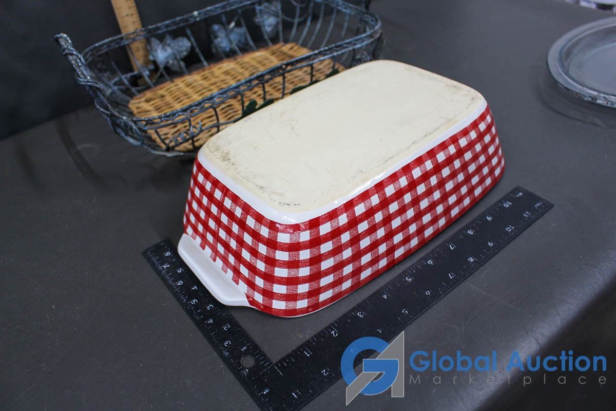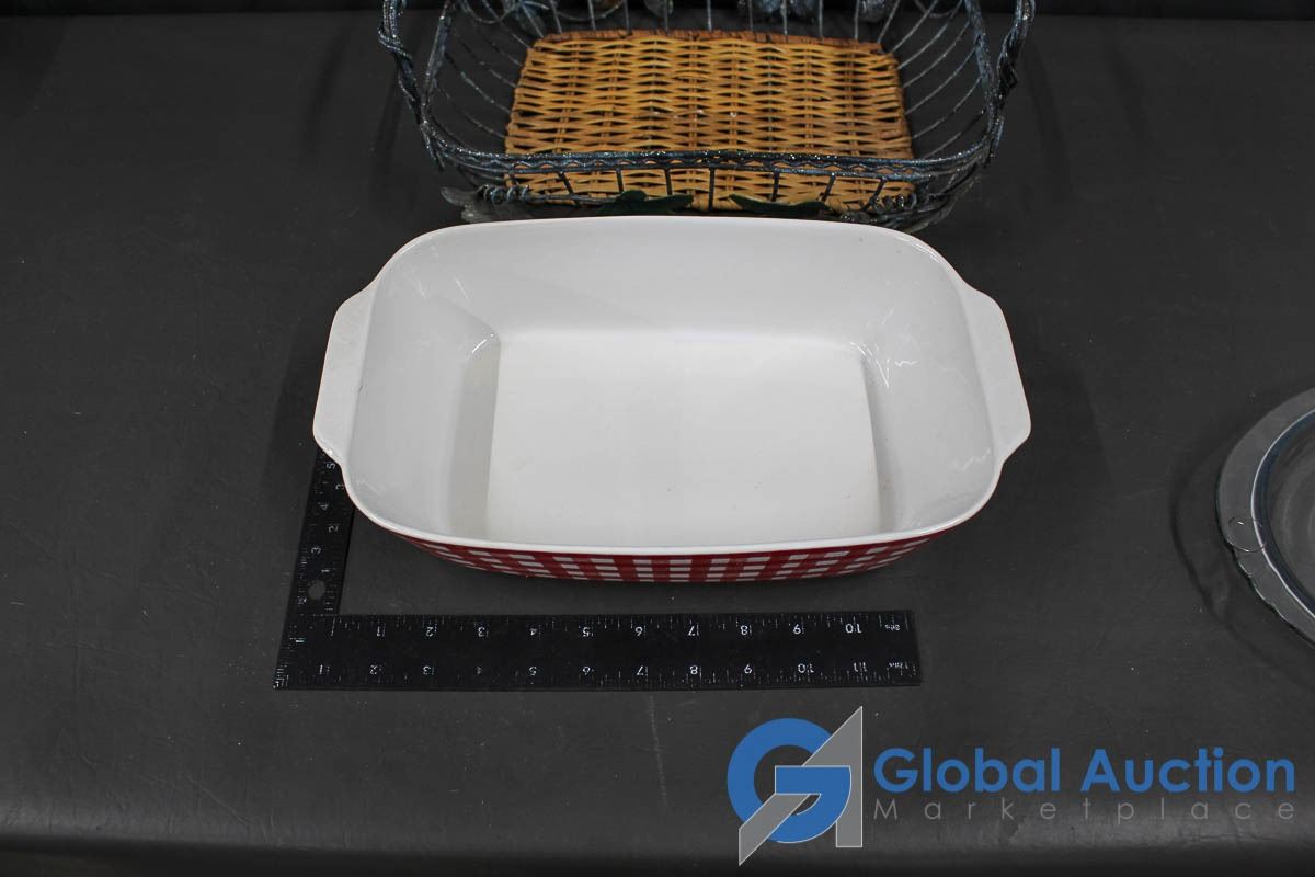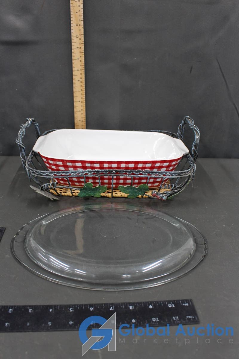Casserole Dish w/Holder and Pyrex Serving Plate