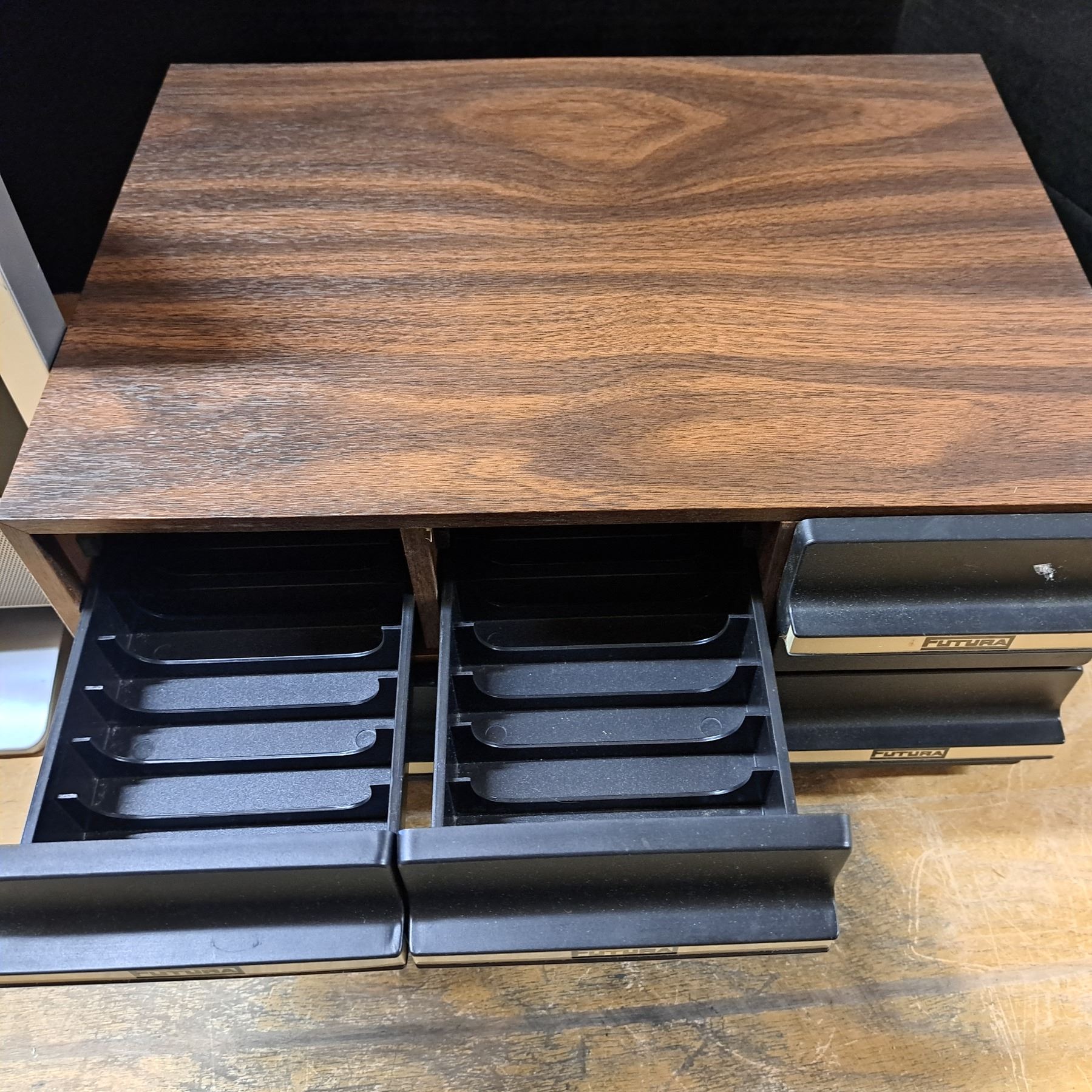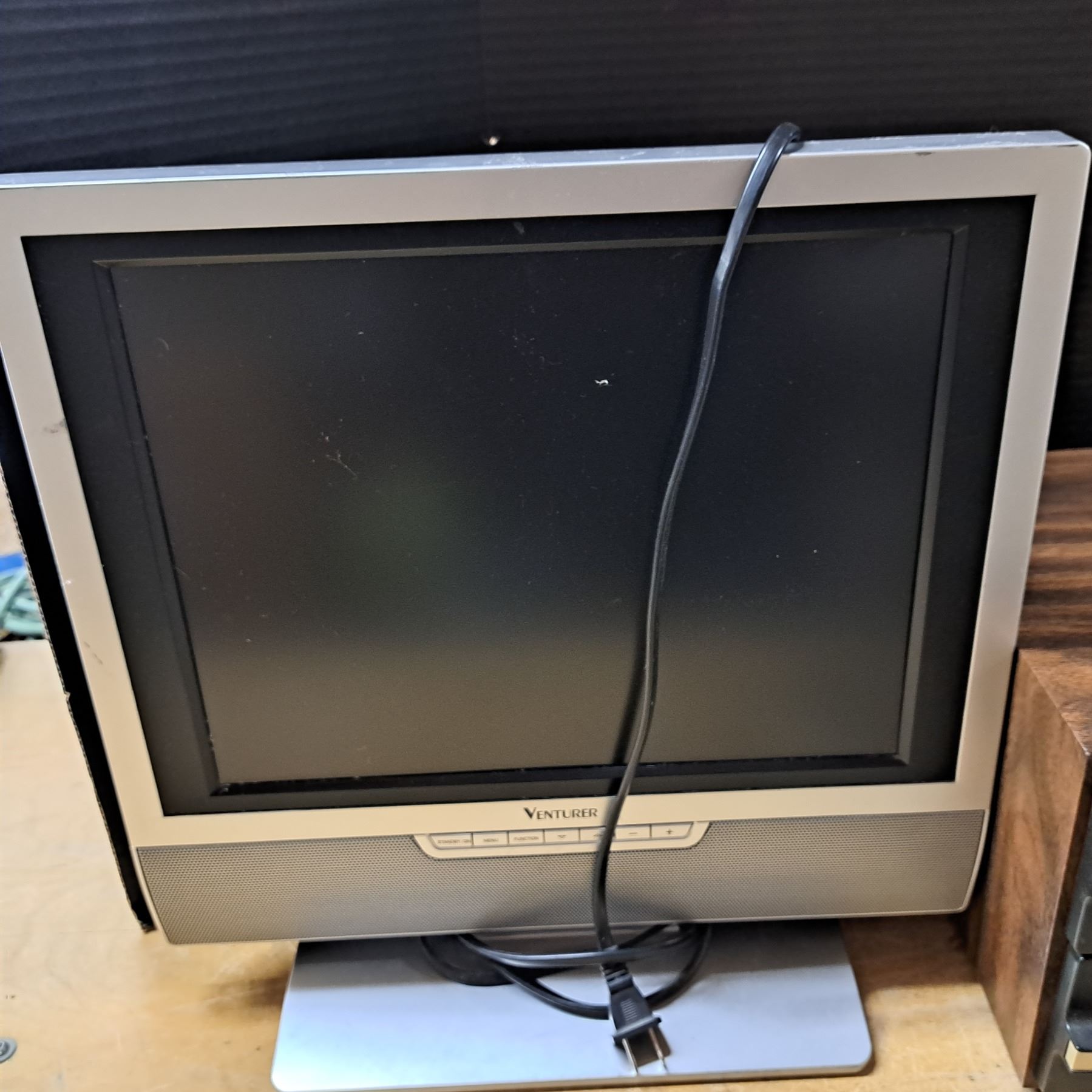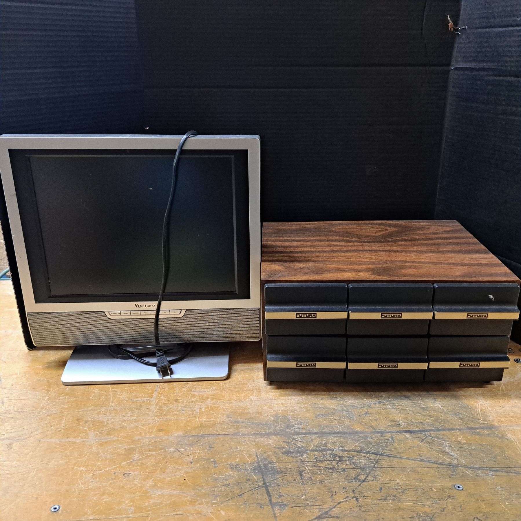 Cassete storage and a small tv 14" wide