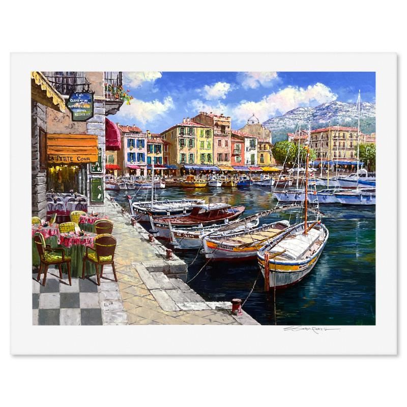 "Cassis" is a limited edition printers proof serigraph on paper by Sam Park numbered and hand signed by the artist. Includes Letter of Authenticity. Measures approx. 22.5" x 27" (border) 18" x 24" (image).
