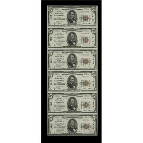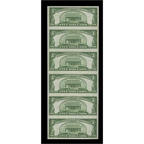 <B>Cassopolis, MI</B></I> - $5 1929 Ty. 1 <B>The First NB</B></I> Ch. # 1812 Uncut Sheet<BR>This is sheet 400 for this denomination and type from this Cass County bank. If you are looking for a sheet for type consider this embossed example. The Cassopolis sheets have done nothing but increase in value over the years. <B>Very Choice Crisp Uncirculated.</B></I><BR><I>From The Plymouth Rock Collection</B></I>