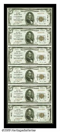 <B>Cassopolis, MI</B></I> - $5 1929 Ty. 1 <B>The First NB</B></I> Ch. # 1812 Uncut Sheet<BR>A lovely sheet with virtually no traces of handling of any kind. It makes a perfect sheet for the collector who just wants to own one of these important items. <B>Choice Crisp Uncirculated.</B></I>