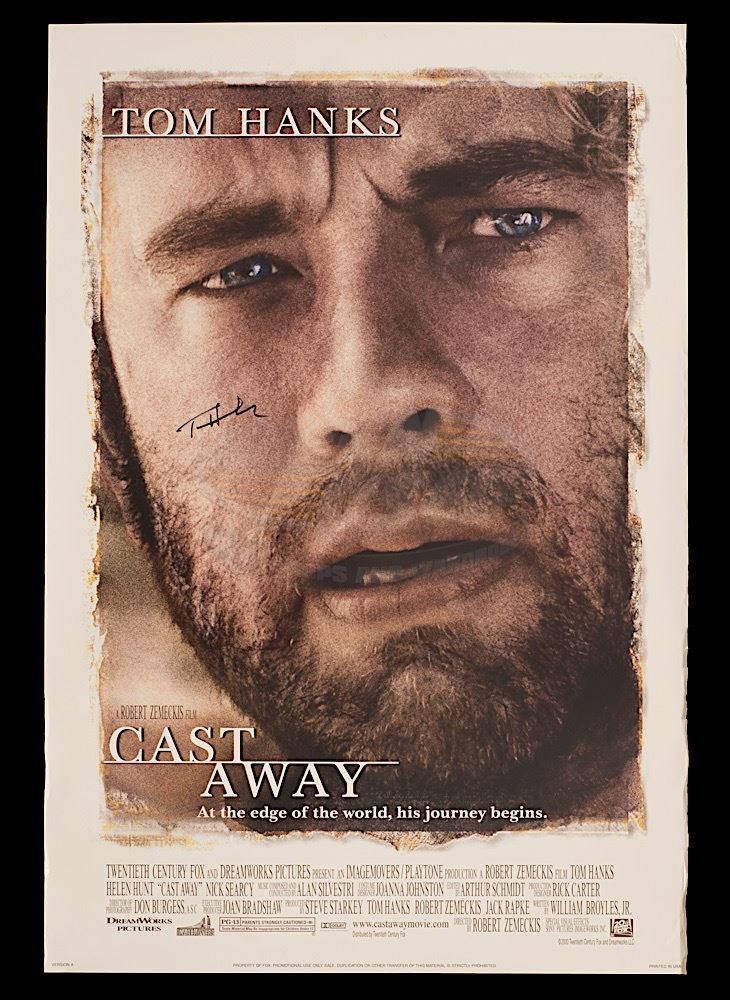 (20th Century Fox, 2000) Original one sheet (27" x 40") poster. Rolled, fine condition. Autographed by Tom Hanks in black marker. Poster has minor edge wear.