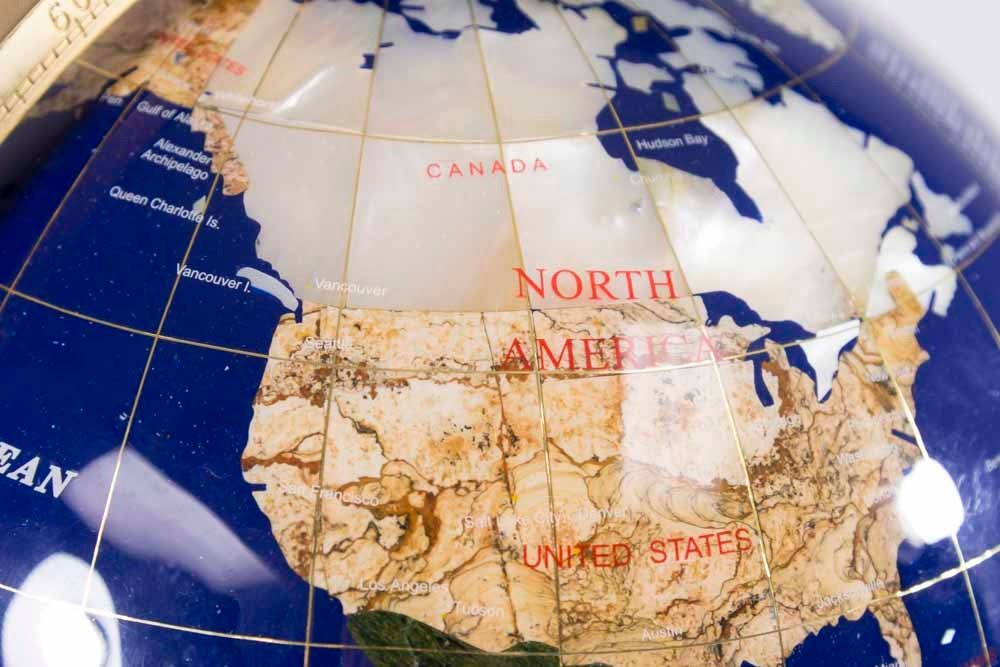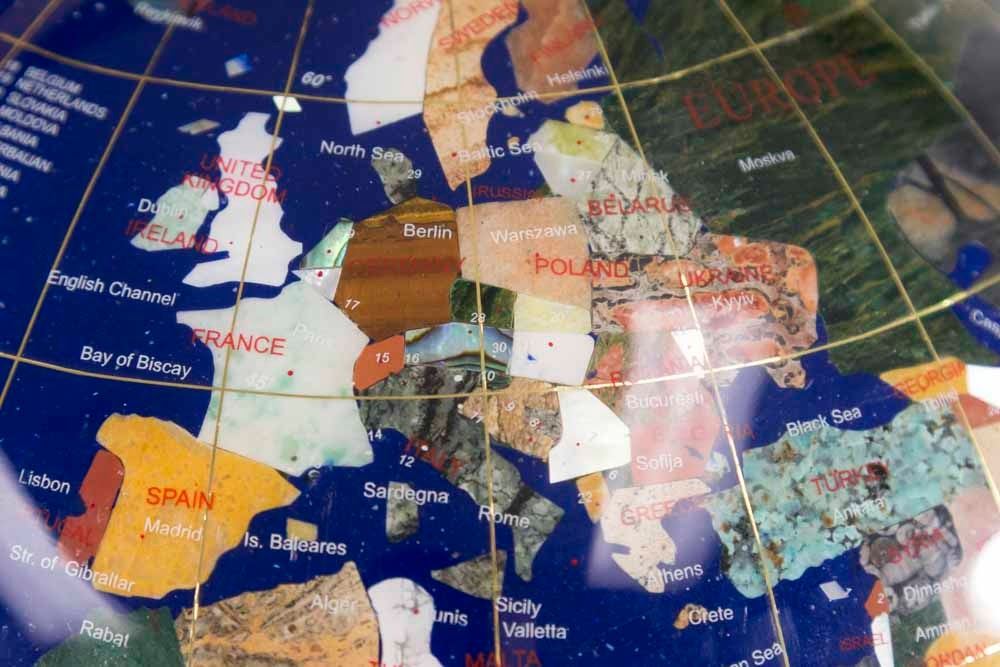 Inlaid in various marbles and semiprecious stones. Approx. 19" H.