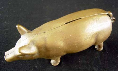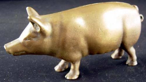 Cast Brass Pig Still Bank, Not a reproduction, Original Paint, 3" x 7" x 2.5"