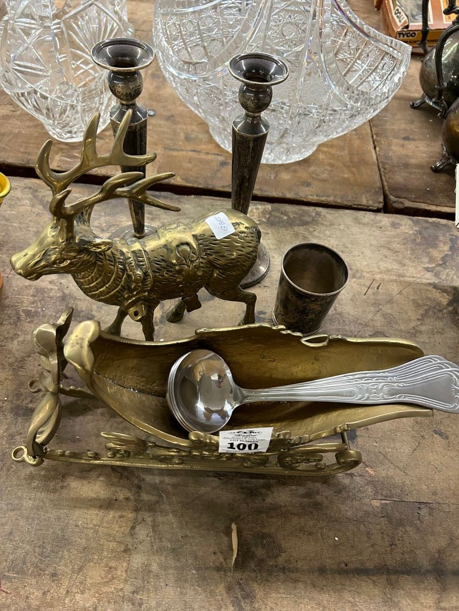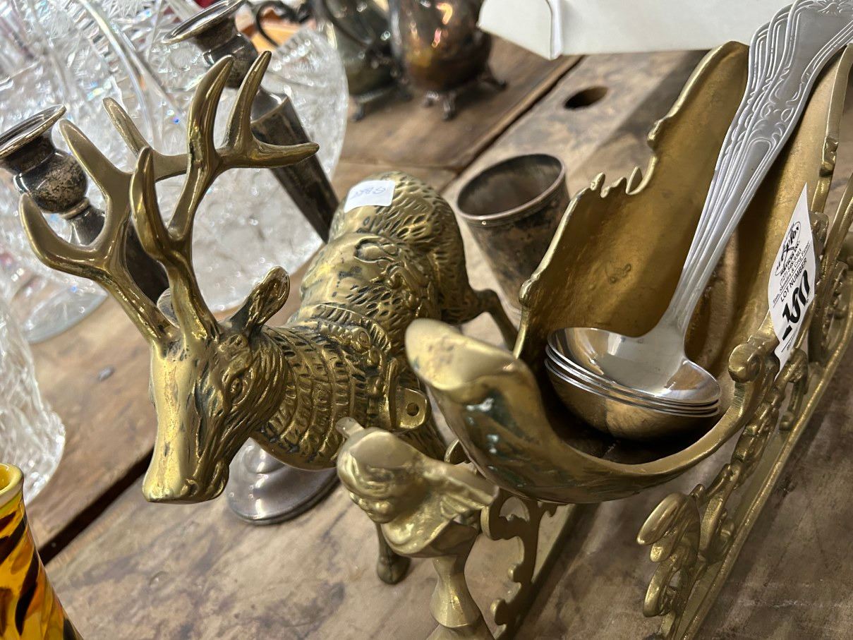 Cast Brass Sleigh w/Reindeer Candlesticks, Goblet, Ladles