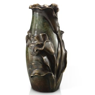 Cast Bronze Flower Vase - 13.5" X 7.5" X 7" - Lost Wax Cast - Patina Finsh