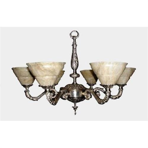 This bronze chandelier with five alabaster tulips was rescued from a demolition site and it is in perfect condition. Shipping cost in USA : $ 100.00. Some assembling may be required. It will take 4 to 5 weeks to deliver