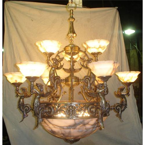 <tr><td>Title:Cast Bronze and alabaster chandelier</td></tr>