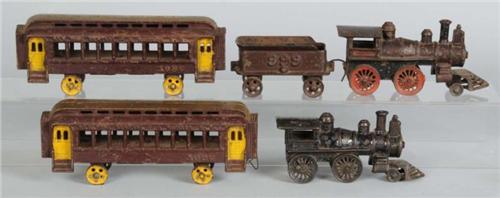 Description Includes steam engine, 999 tender and two New York Central and Hudson railroad 1086 passenger cars. Also includes one additional cast iron engine. Moderate overall paint wear and in very good condition.