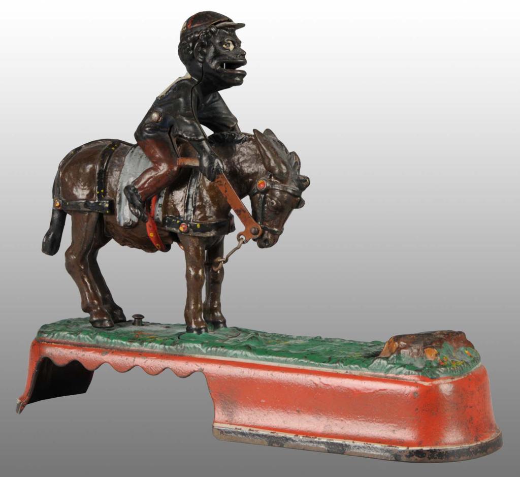 Description Manufactured by J. & E. Stevens and Company. Working. Jockey over variation with nice highlights on base. Condition (Excellent Plus).