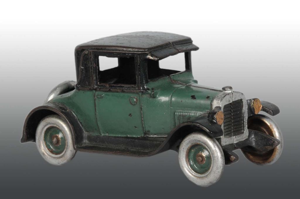 Includes original spare tire on rear but missing driver. No cracks or repairs with moderate paint chipping and wear, especially to roof. Cast Iron Toys Condition (Very Good). Size 8" L.