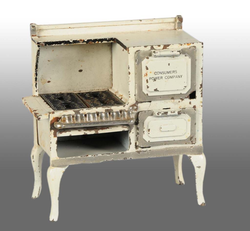 Marked "Consumer Power Co." on stove door. Some chipping to overall paint. Condition (Excellent). Size 6" x 6".