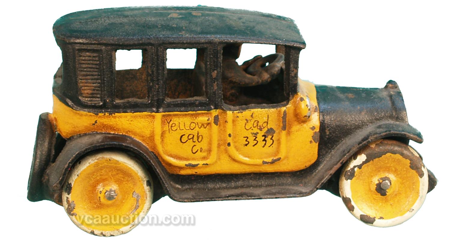 Cast-Iron Arcade Yellow Taxi Cab w/ Driver - 8" Long