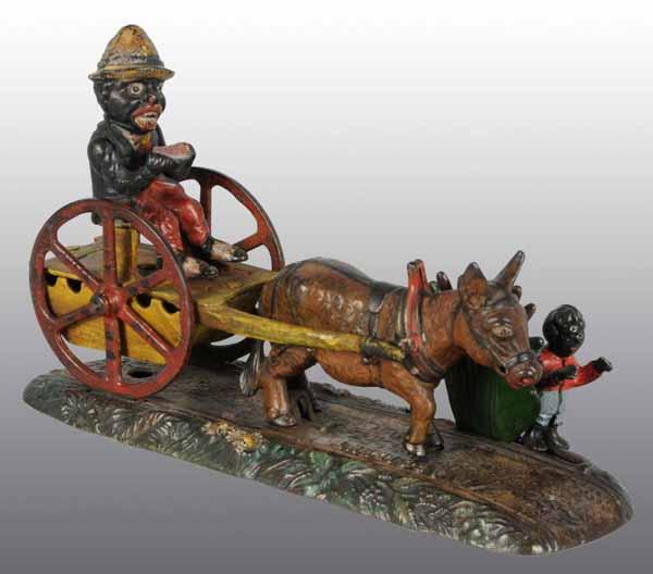 Description Manufactured by J. & E. Stevens and Company. Replaced boy behind the bush figure. Condition (Very Good). CORRECTION - Cart is repaired.